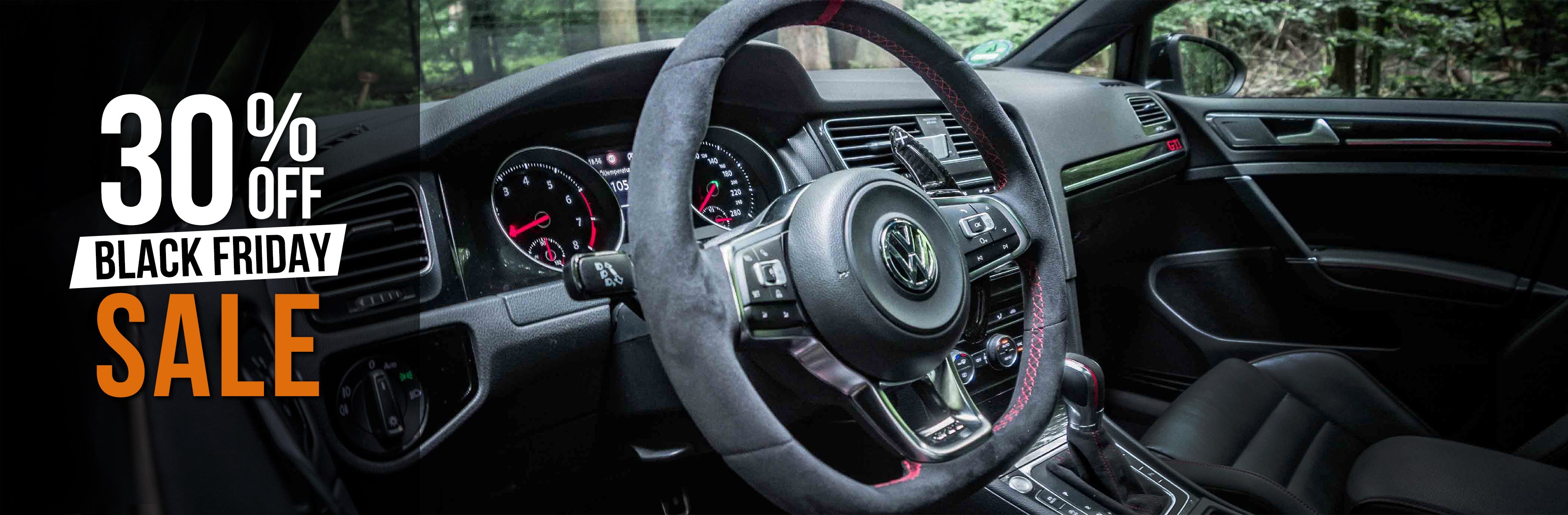 Improve the thickness and grip of your steering wheel while also protecting it with a fully custom, made to order, steering wheel cover.