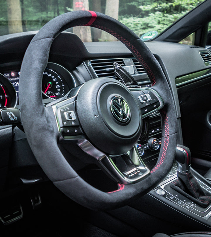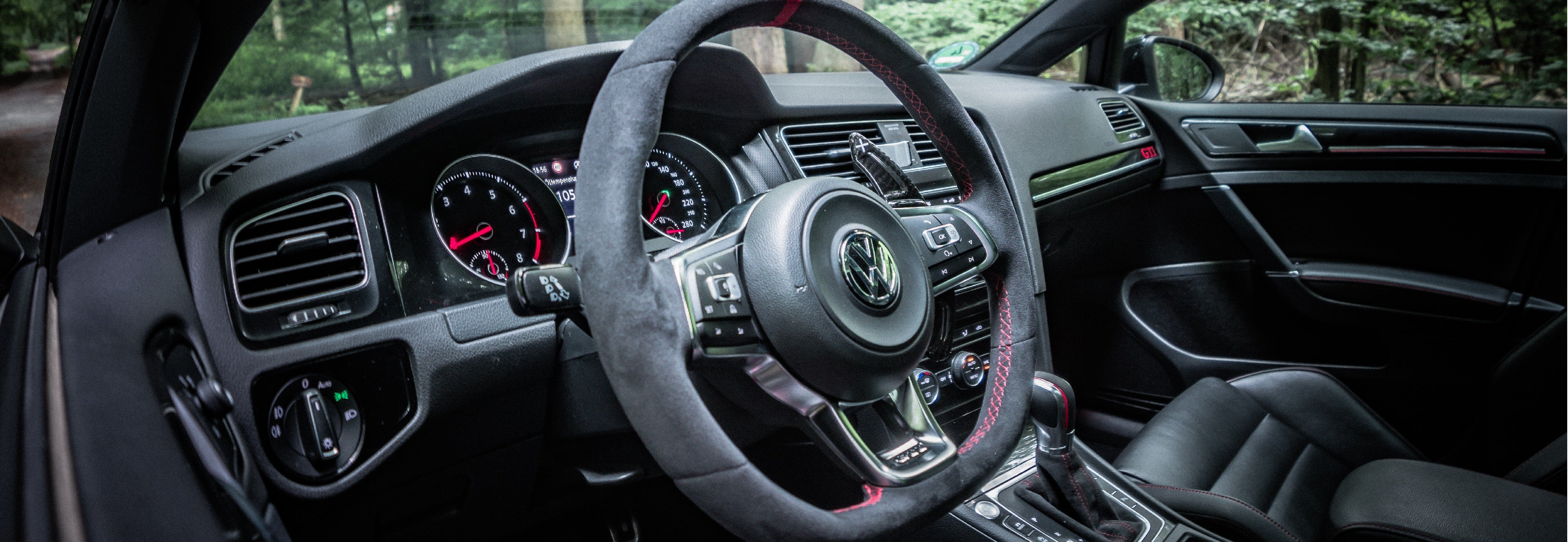 Improve the thickness and grip of your steering wheel while also protecting it with a fully custom, made to order, steering wheel cover.