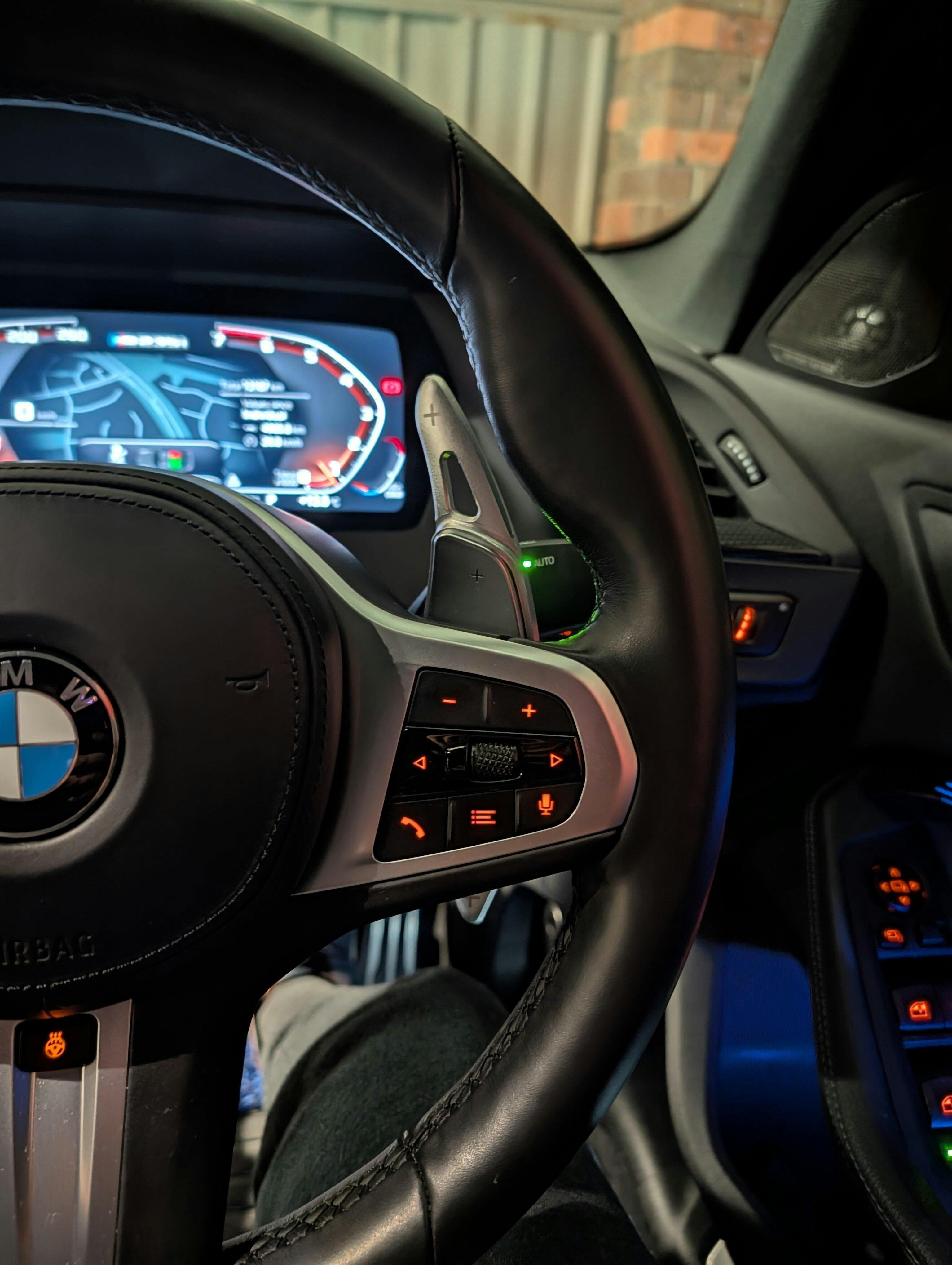 Improve your shifting response and driving experience in your BMW with these high-quality aluminum metal paddle shifter extensions. With the extended reach, you can shift effortlessly from any position on the steering wheel while also providing an improved aesthetic to your vehicle's interior.