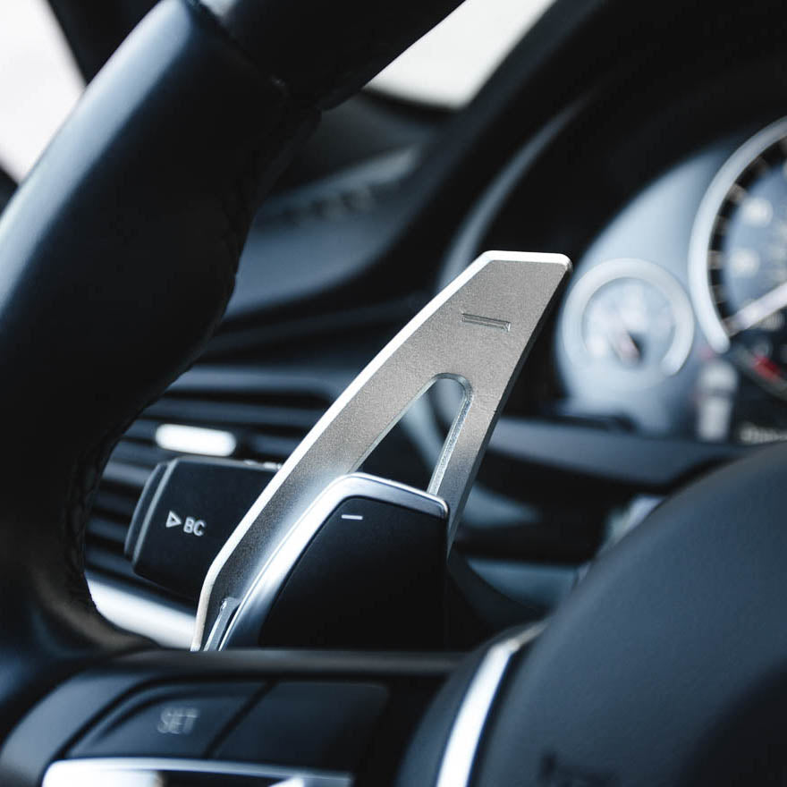 Improve your shifting response and driving experience in your BMW with these high-quality aluminum metal paddle shifter extensions. With the extended reach, you can shift effortlessly from any position on the steering wheel while also providing an improved aesthetic to your vehicle's interior.