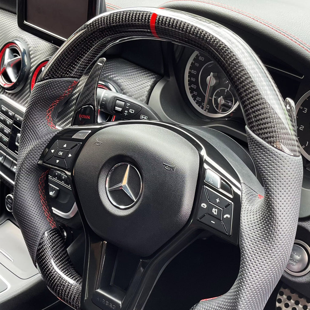 Transform your Mercedes' shifting feel and elevate your driving experience with these fully carbon fiber MCT paddle shifter extensions. Designed to provide an extended reach, they allow you to shift gears effortlessly, no matter where your hand may be positioned on the steering wheel.