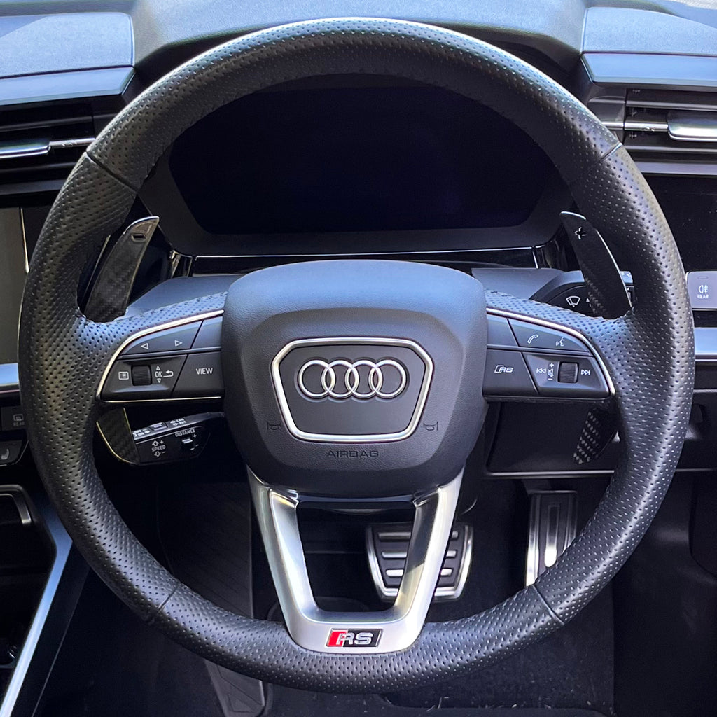 Each paddle is crafted from genuine carbon fiber, paired with a solid aluminum body for superior strength and a premium feel - a significant upgrade over plastic alternatives. Compatible with almost all 2017-2025 Audi models, these shifters offer a precise fit and integration with your interior.