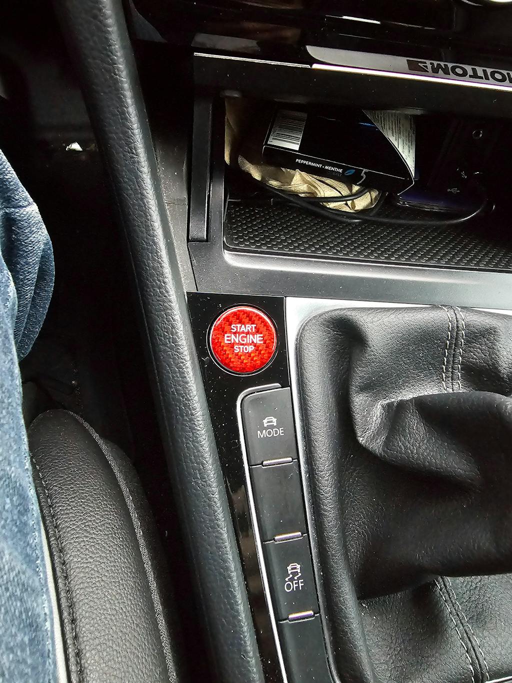 - Genuine carbon fiber start stop button cover.