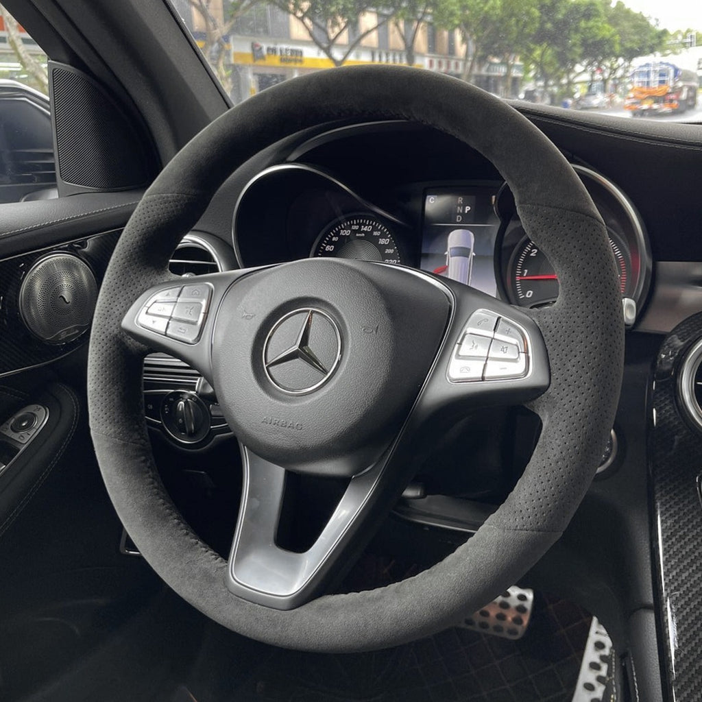 Upgrade your driving experience with a fully customizable suede steering wheel cover that enhances the thickness, grip, and protection of your steering wheel.