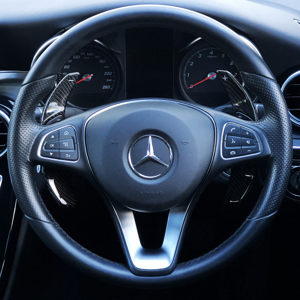Improve your driving experience and the shifting feel of your Mercedes with these carbon fiber paddle shifter extensions. Specifically designed for an extended reach, shifting gears will be effortless regardless of your hand's position on the steering wheel.
