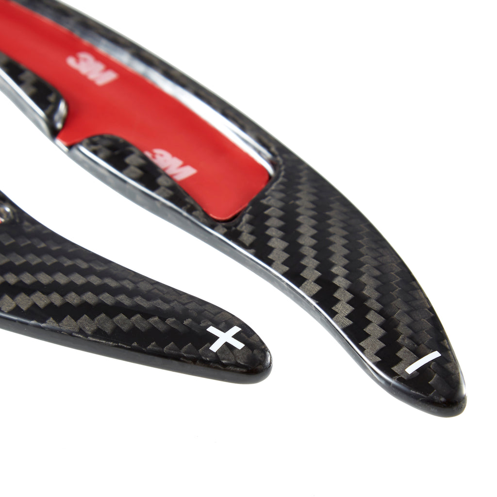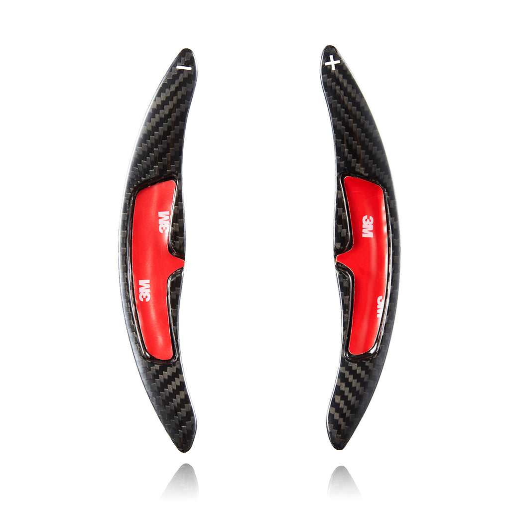Installation is a breeze with the included double-sided adhesive. In just minutes, you can upgrade your Porsche's performance and appearance. These extensions are designed to perfectly align with your stock paddle shifters, resulting in a secure and seamless fit that will elevate your driving experience. Don't settle for average - give your Porsche the upgrade it deserves with these carbon fiber paddle shifter extensions.